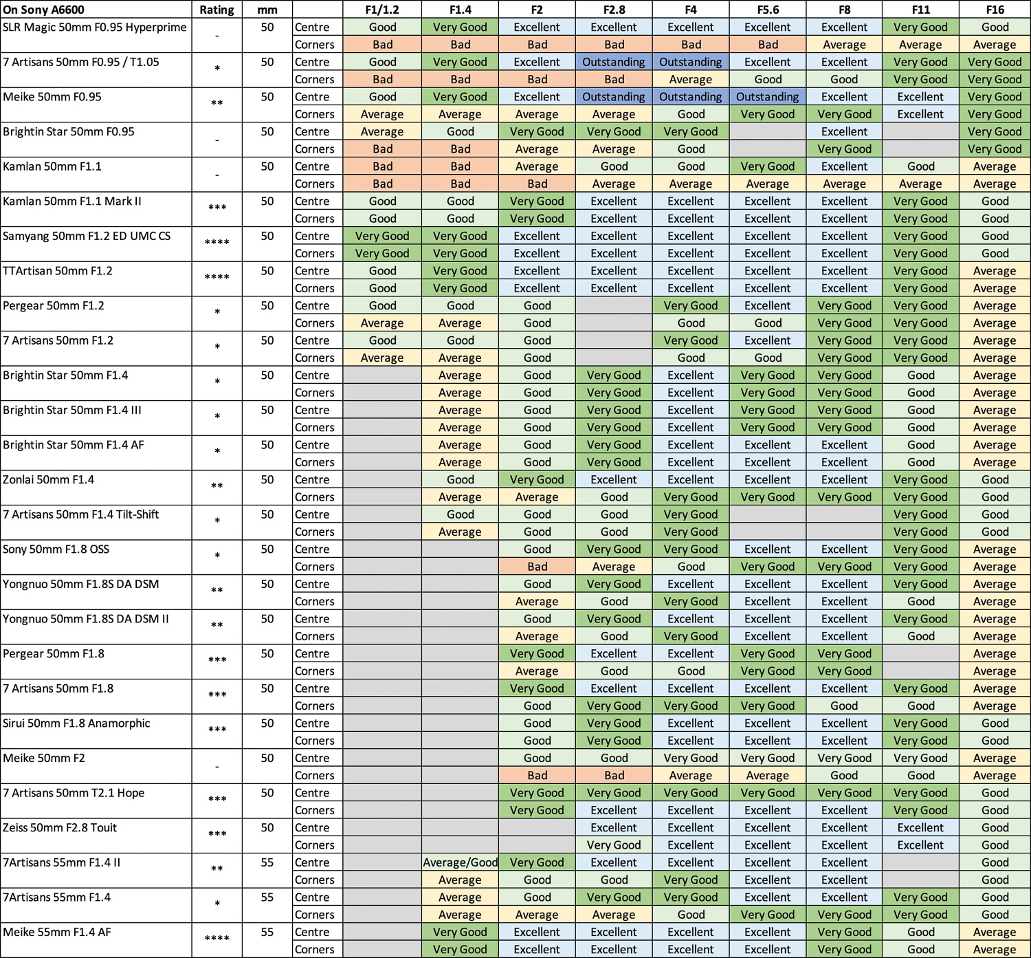 Le 7 Artisans 50mm F0.95 (249$) pour Sony APS-C (A6xxx) fait partie d’une série de 3 optiques F0?95 que 7 artisans a produit pour les boitiers Sony APSC : 25mm F0.95, 35mm F0.95 et 50mm F0.95 – le fait d’avoir 3 optiques du meme constructeur à F0.95 est déjà un avantage en soi si vous recherchez les ouvertures ultra lumineuses